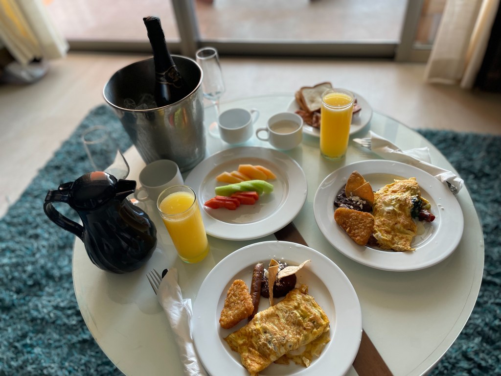 If you are considering Cozumel for your honeymoon, the resort we stayed at (like many resorts I’m sure) does offer a few honeymoon packages. They are available at an additional cost OR complimentary depending on the length of your stay! Ours was gifted due to the length of our stay (nine nights) which was so appreciated. We did have to provide proof of actually getting married, we were told it could just be a wedding invitation or copy of your marriage certificate. If you’re interested in this, be sure to check with the resort so the information is up to date! With the honeymoon package, we were gifted “The Secrets Eternity Honeymoon Package”, we received fresh fruit + a bottle of sparkling wine when we arrived. Breakfast in bed + mimosas one morning (this is different from traditional room service but breakfast and mimosas are available for room service!), couples massages, additional spa treatments, private beachfront dinner with a bottle of wine and great menu (this can be upgraded to the sunset dining on the dock which is what we did!), romantic turn down service, and more. Literally, it was AMAZING. You also have the option to stay for your first anniversary and receive a few free nights depending on how long you booked for!